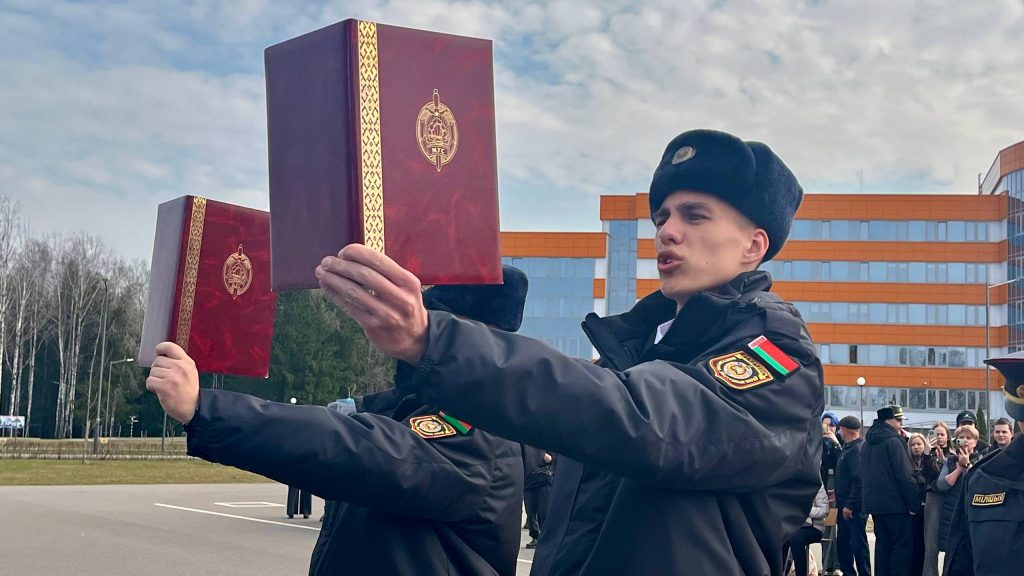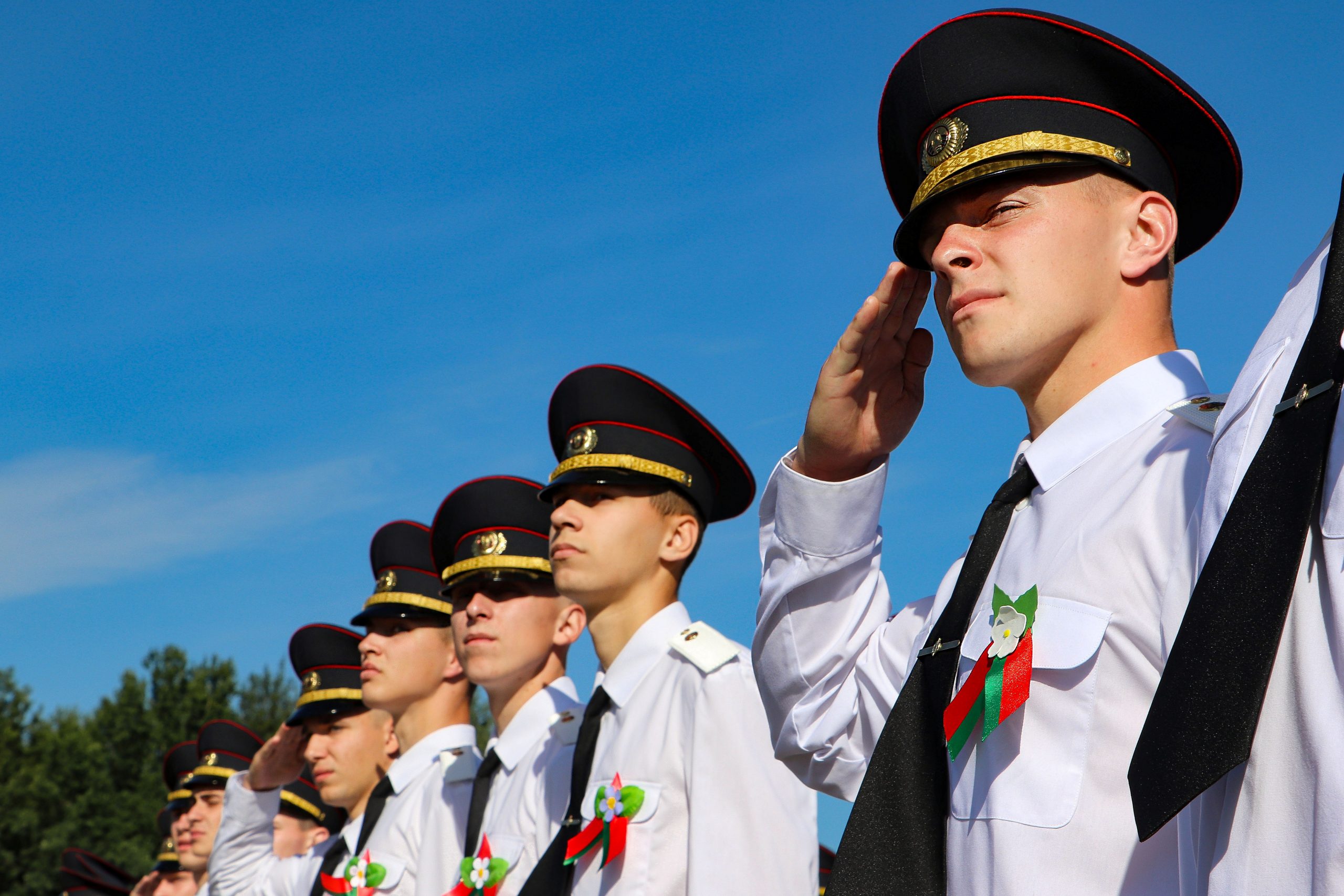 «Служу Республике Беларусь!». На большом плацу Колледжа МВД состоялась торжественная церемония принесения клятвы на верность Республике Беларусь и ее народу. Далее