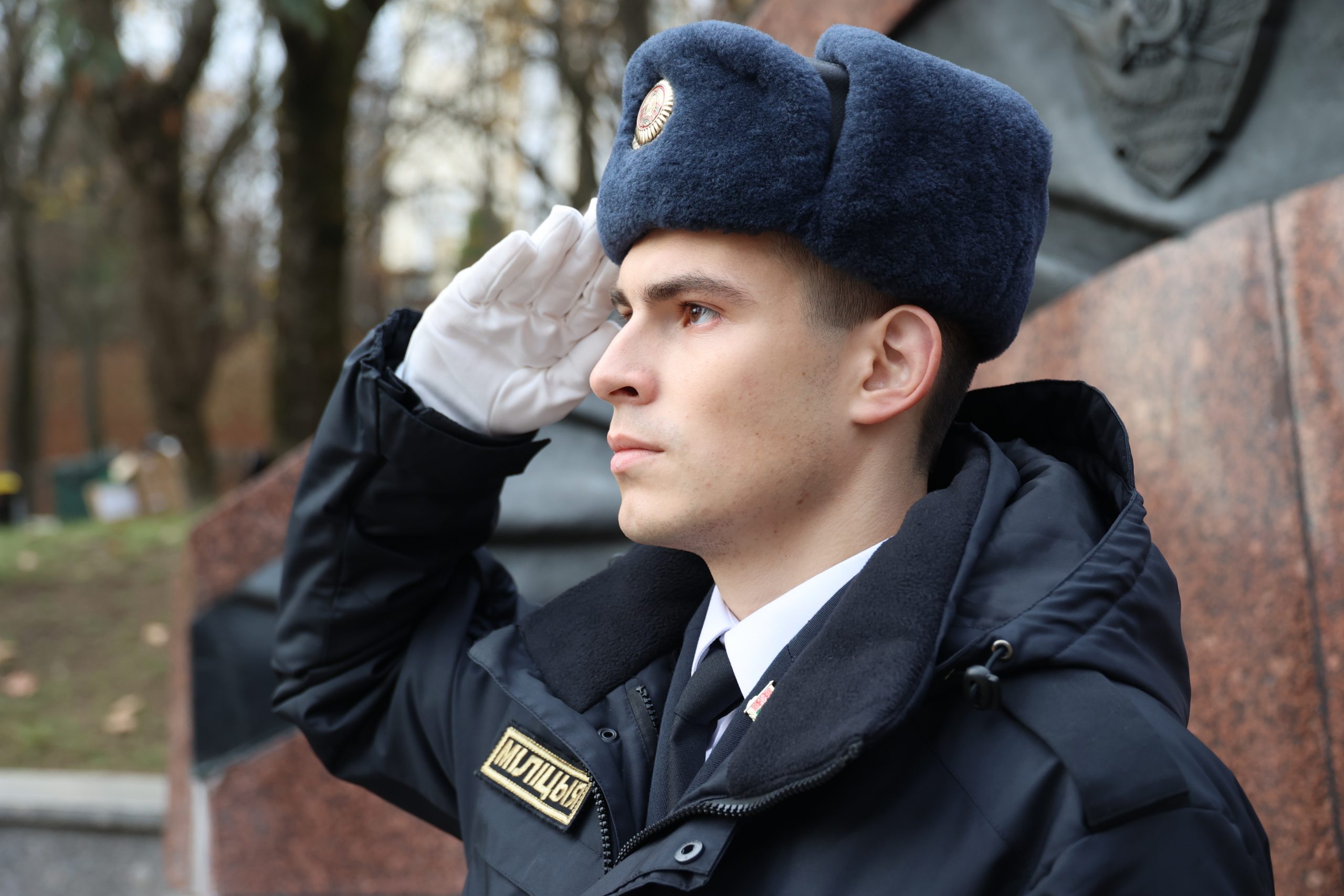 Руководство Колледжа МВД совместно с курсантами первоначальной подготовки возложили цветы к фигуре Непокоренного человека. Далее