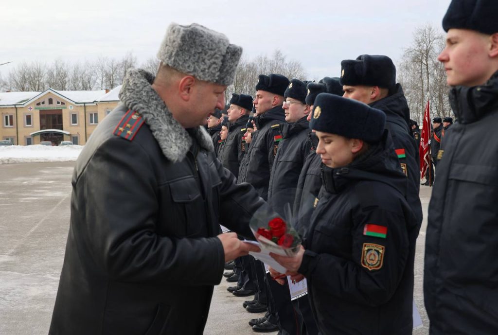 В торжественной обстановке с напутственными словами к молодым сотрудникам обратился начальник Колледжа МВД полковник милиции Александр МАШКИН. Отличившимся курсантам, показавшим отличные результаты в учебе и активно участвовавшим в жизни учреждения образования, были присвоены очередные специальные звания младшего начсостава «младший сержант милиции», а также объявлены благодарности.