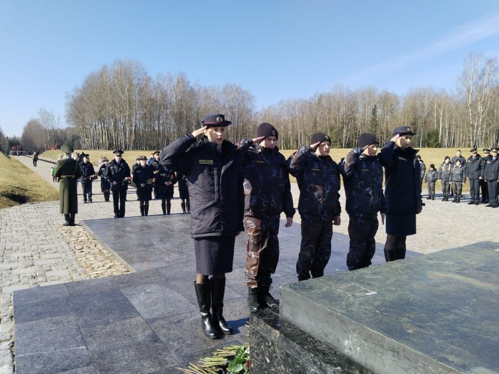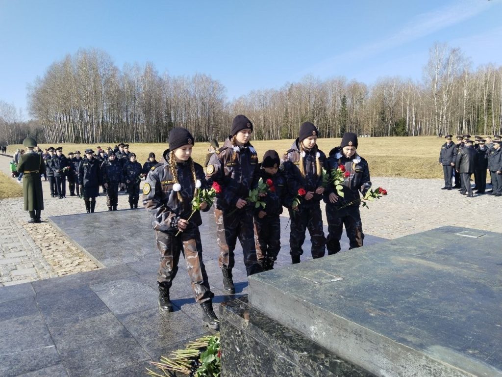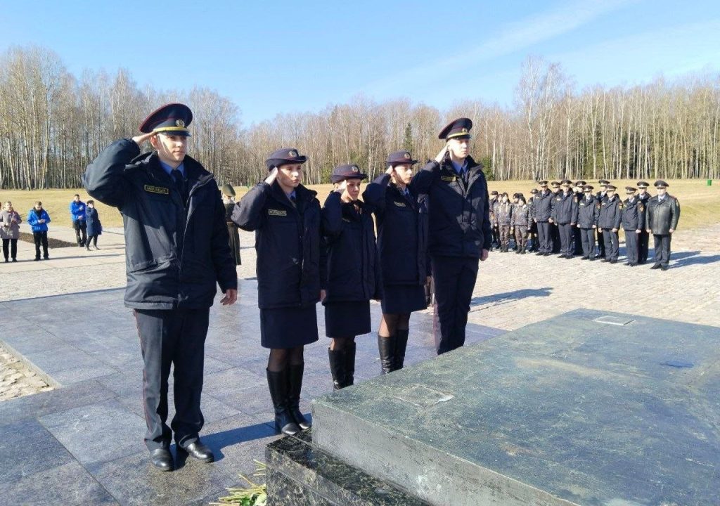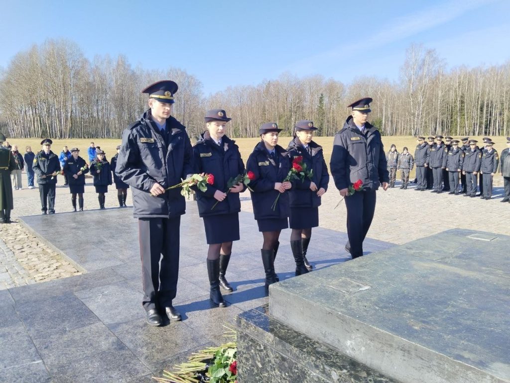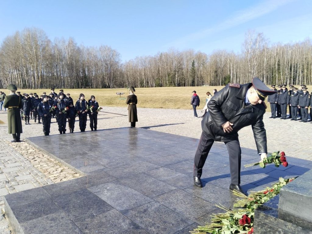 Начальник Колледжа МВД полковник милиции Александр МАШКИН совместно с курсантами первоначальной подготовки Колледжа МВД и воспитанниками военно-патриотического клуба «МиР» возложили цветы к фигуре Непокоренного человека.