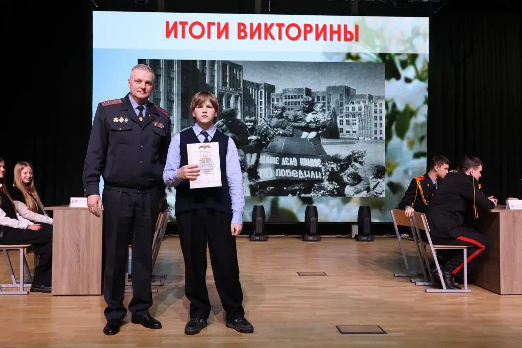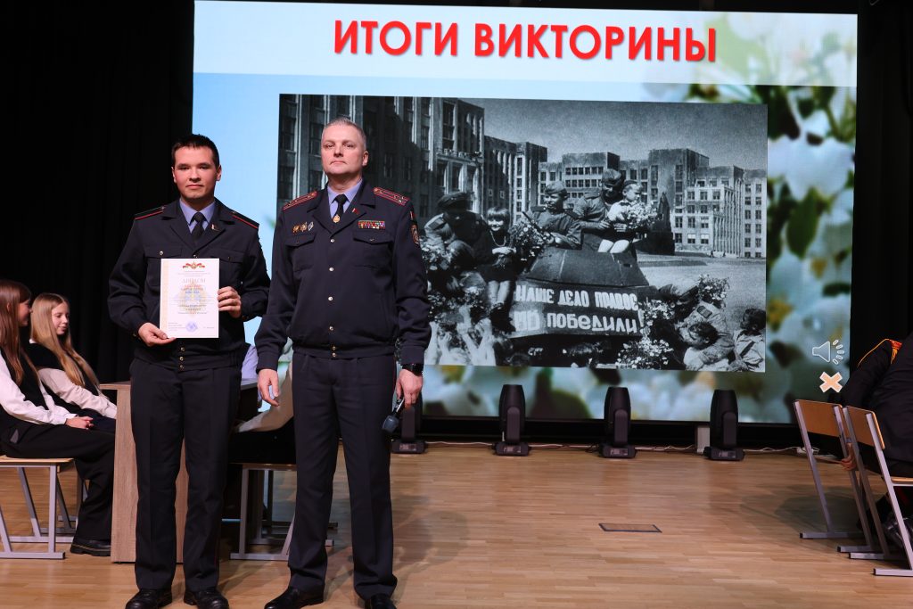 По итогам викторины первое место завоевала команда Специализированного лицея МВД. На вторую ступеньку пьедестала поднялись представители Колледжа МВД. Бронза досталась ребятам из военно-патриотического клуба «МиР». В шаге от пьедестала оказалась команда Академии МВД и заняла четвертое место.
