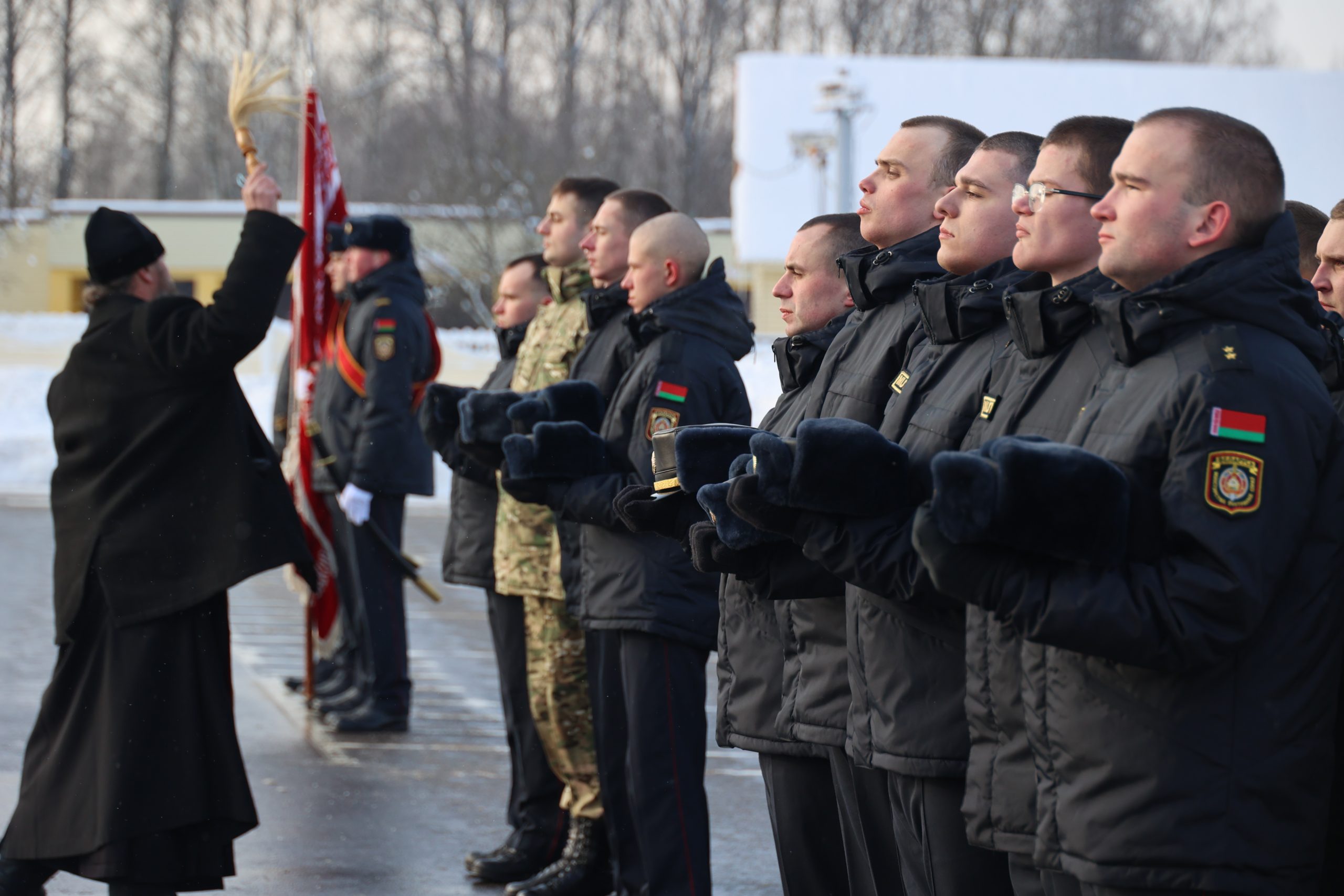 Священнослужитель православной церкви отец Олег обратился к принявшим Присягу курсантам с напутственным словом и благословил их на ратный труд.